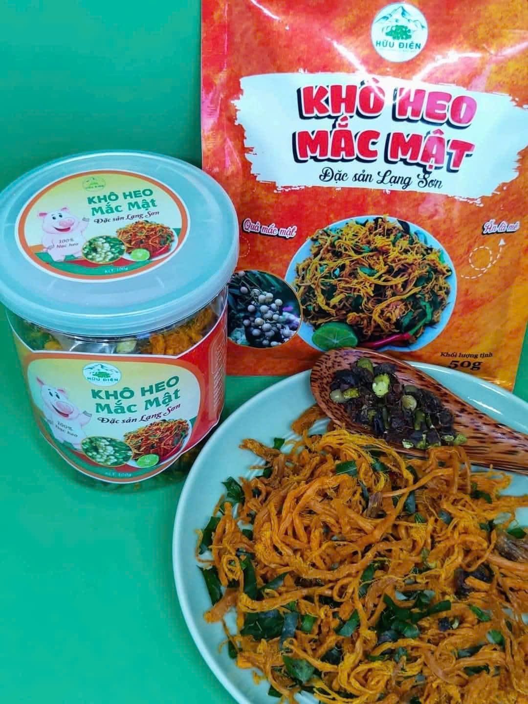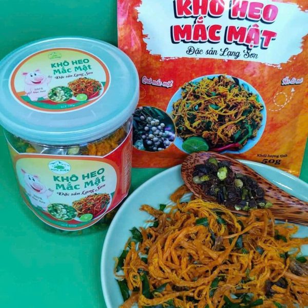 - Nguồn gốc & hương vị đặc trưng: Heo khô mắc mật là đặc sản Bắc Sơn (Lạng Sơn), kết hợp thịt heo với lá mắc mật và gia vị truyền thống, tạo nên hương vị núi rừng độc đáo.
